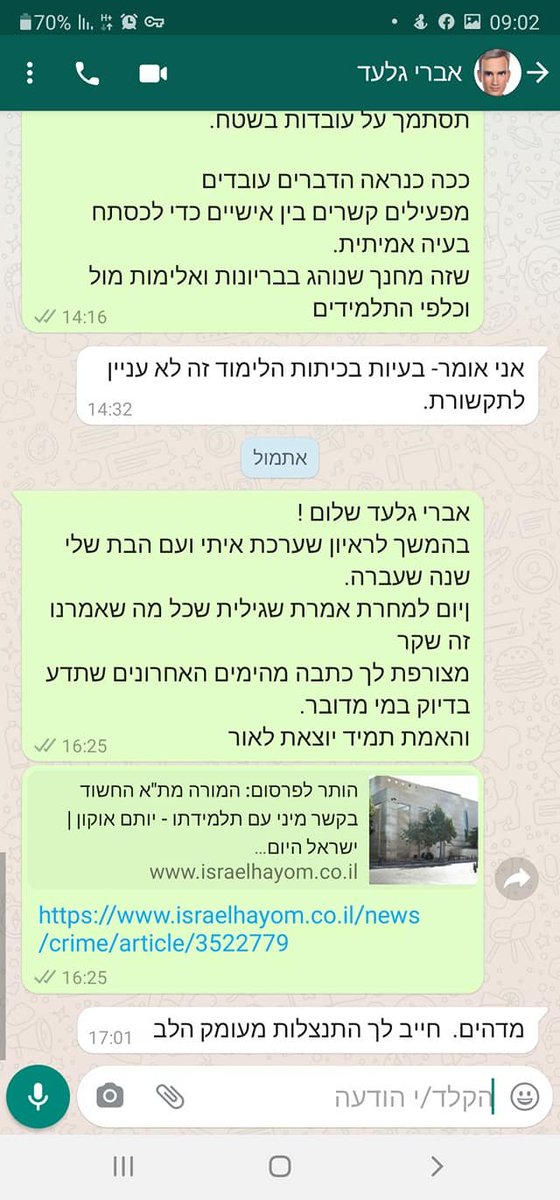 עדויות מבית הספר שבו לימד יותם אוקון, החשוד בביצוע עבירות מין בבת 12, חושפות את התלונות שהגיעו לצוות החינוכי בעבר. הוא ניהל איתה התכתבויות מיניות בוטות וביקש שתשלח לו תמונות עירום. יותם אוקון, מורה ומחנך בבית ספר יסודי בתל אביב, הוא הגבר שנעצר בחשד שביצע עבירות מין בתלמידתו. לאחר שאתמול (רביעי) הותר לפרסום שמו, כעת תלמידות לשעבר מספרות ברשתות החברתיות על מקרים שהן עברו. עדויות מבית הספר שבו לימד יותם אוקון, החשוד בביצוע עבירות מין בבת 12, חושפות את התלונות שהגיעו לצוות החינוכי בעבר.